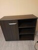 Praktyczna komoda w kolorze ciemnego drewna. Posiada jedną zamykaną szafkę oraz otwarte półki. Mebel jest używany, ale ...